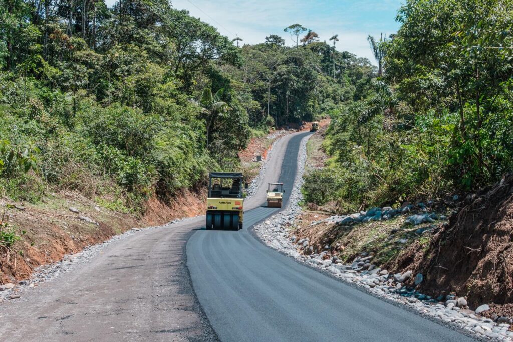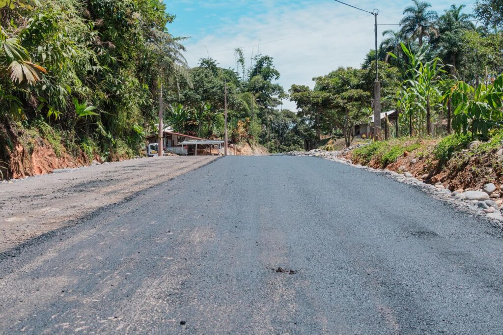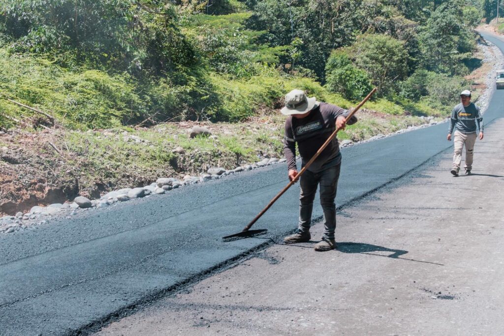 En la parroquia Veracruz, se ejecutan los trabajos de mantenimiento asfáltico en la vía Chorreras ( Gringoyaku), una obra por administración directa que contempla 2 kilómetros de mejoramiento vial.