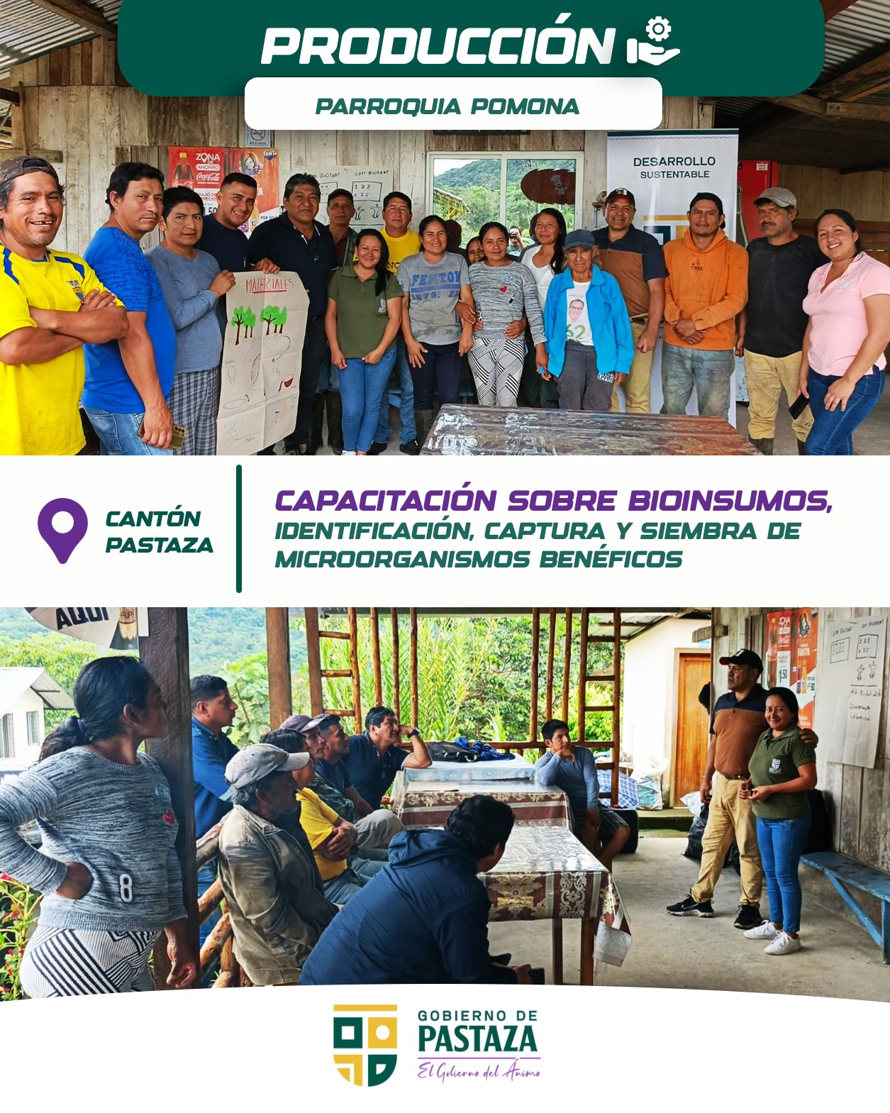 Productores del sector Libertad participaron en la capacitación sobre identificación, captura y siembra de microorganismos benéficos, una iniciativa del Gobierno de Pastaza que promueve el uso de bioinsumos naturales en los cultivos de papa china y caña.